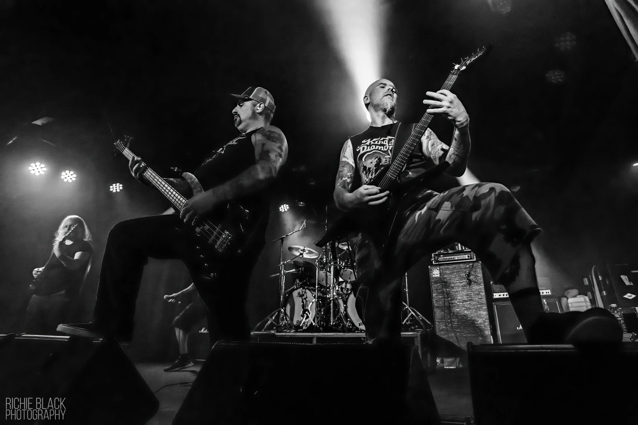 The sheer aptitude with which cascading sheets of lead sweeps/flourishes and dime-turn tempo changes punctuate the track are dizzying, but not left without seriously hefty riffing to keep that frenzied pit very much alive. The gesturing, beckoning and fist-pumping to the front few rows by Haynes and Co incites the circle-pit into a vaguely-circle-shaped mass. I really dug Ezra’s extension into lower-register range growls on the new material, and his prowess as a subsonic boomer alongside Brandon is on full display here.